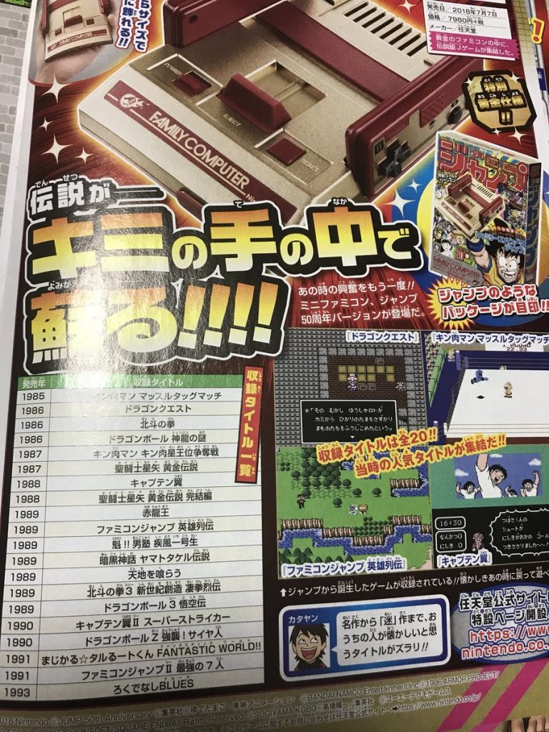 Batizada de Nintendo Classic Mini Family Computer Weekly Shonen Jump 50th Anniversary Edition (sim, esse é realmente o nome oficial da nova versão) em comemoração aos 50 anos da revista Weekly Shonen Jump, ele trará uma nova sequência de jogos.