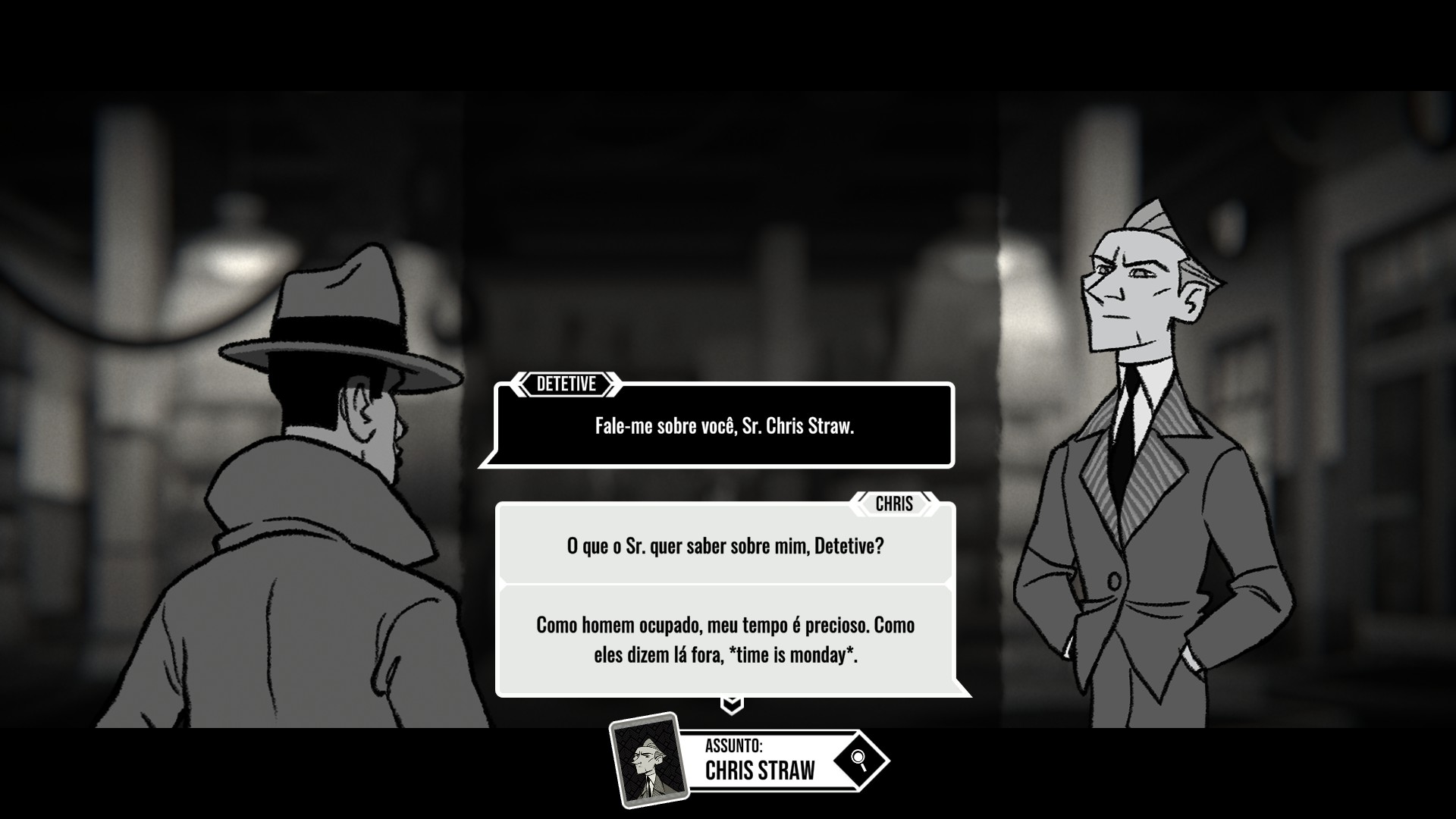 O jogo também lembra um pouco a estrutura do jogo “Detetive”, em que você vai fazendo essa coleta de pistas que levam a outros personagens e conforme você os interroga, novos elementos vão surgindo até o seu derradeiro final.