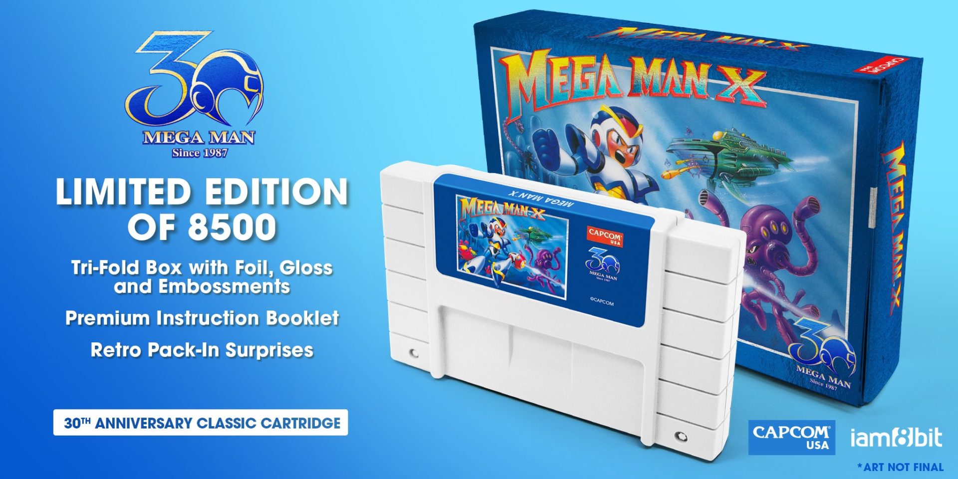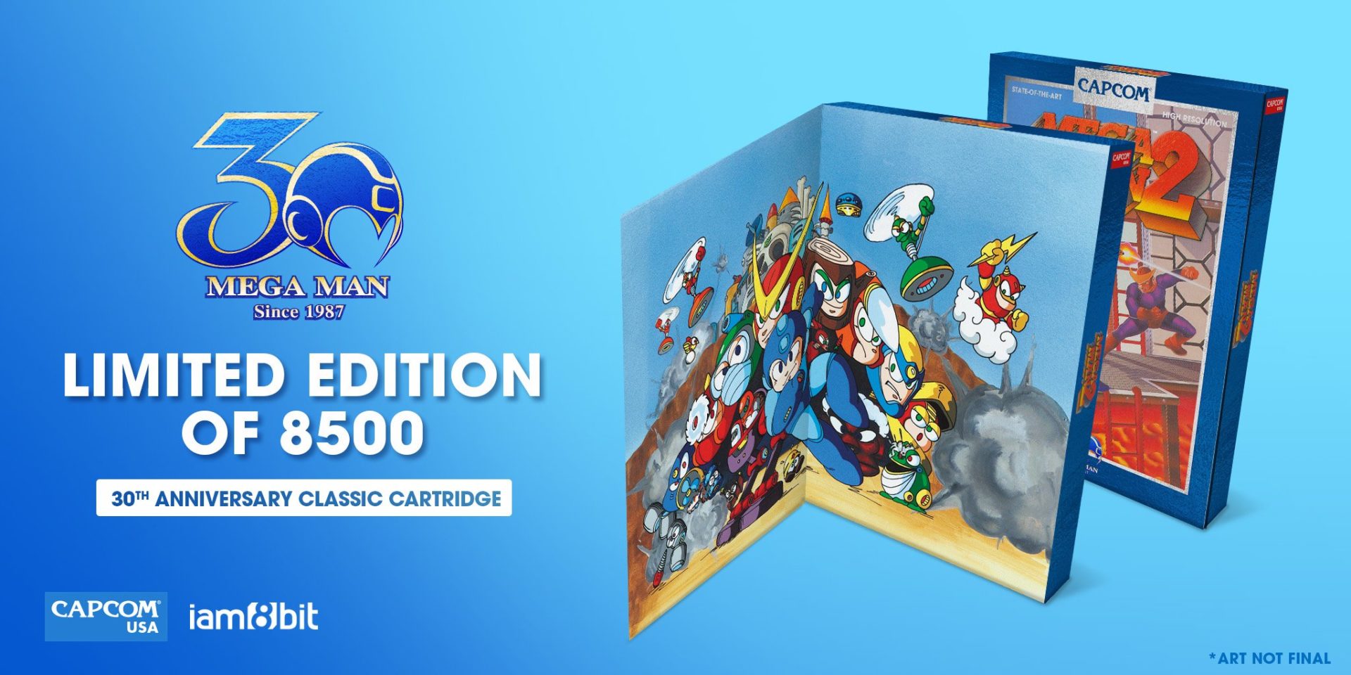 Mega Man 2, lançado para o Nintendinho, ganhará uma nova tiragem de cartuchos numa cor azul-claro que remete a cor do herói nesse período, enquanto Mega Man X, lançado originalmente para o Super Nintendo, ganhará um novo cartucho na cor branca, remetendo a armadura que o personagem coleta durante sua aventura, lhe dando novos poderes e habilidades.