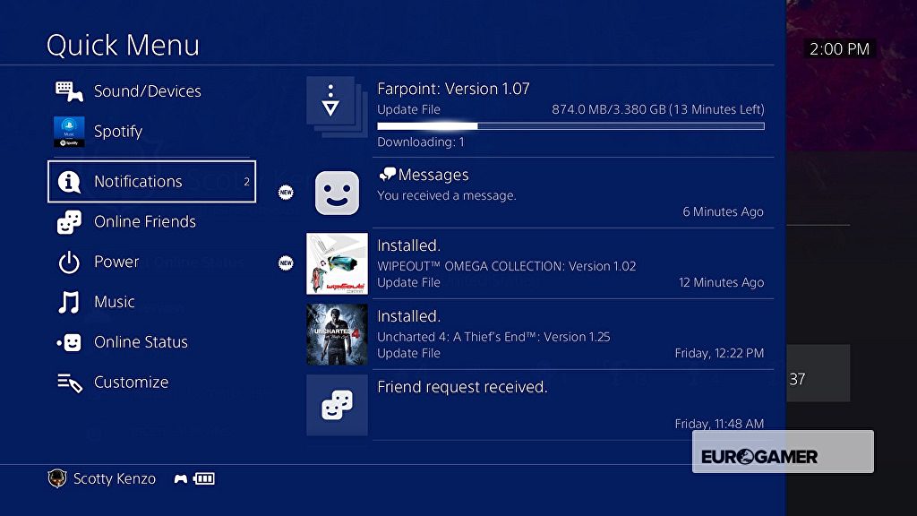 O portal de notícias Eurogamer teve acesso a algumas das principais telas da nova atualização de software para o Playstation 4. Apesar do site se ater apenas em mostrar os prints das telas, é possível ver algumas mudanças no menu rápido de acesso, como a inclusão da área de notificações, além de algumas outras mudanças como gerenciamento de Partys com os amigos.