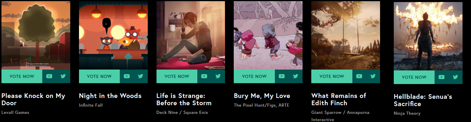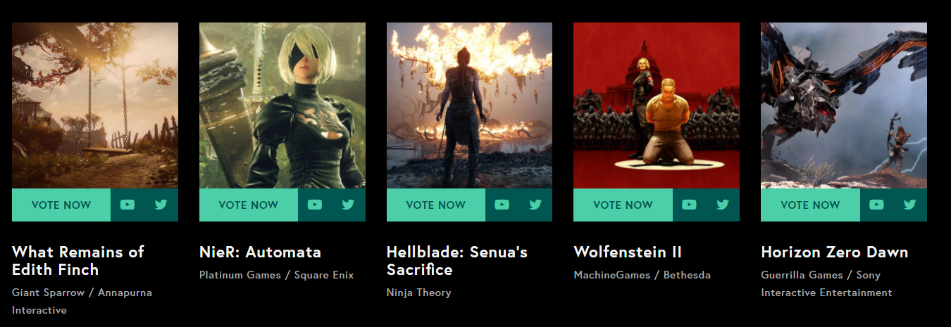 Você pode votar no seu game preferido no site oficial do evento. Abaixo, você pode conferir a lista de indicados nas diversas categorias: