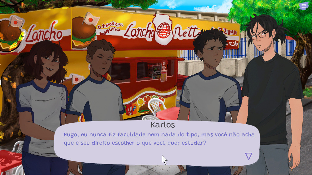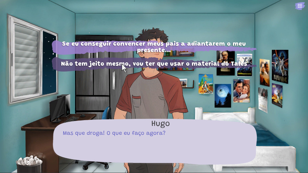 Em NVDA, assumimos o papel de Hugo, um estudante que está prestes a concluir o ensino médio e passa pelo dilema de todo jovem: vestibular. Ele sonha em produzir um filme e precisa decidir entre seguir seu sonho ou cursar algo que garanta uma estabilidade financeira. Durante o jogo Hugo terá que balancear seu tempo entre estudo, lazer, amigos e aprender, na prática, o passo a passo necessário para produzir seu filme, desde o desenvolvimento do roteiro até mesmo captação de recursos e patrocínio para que possa financiá-lo.