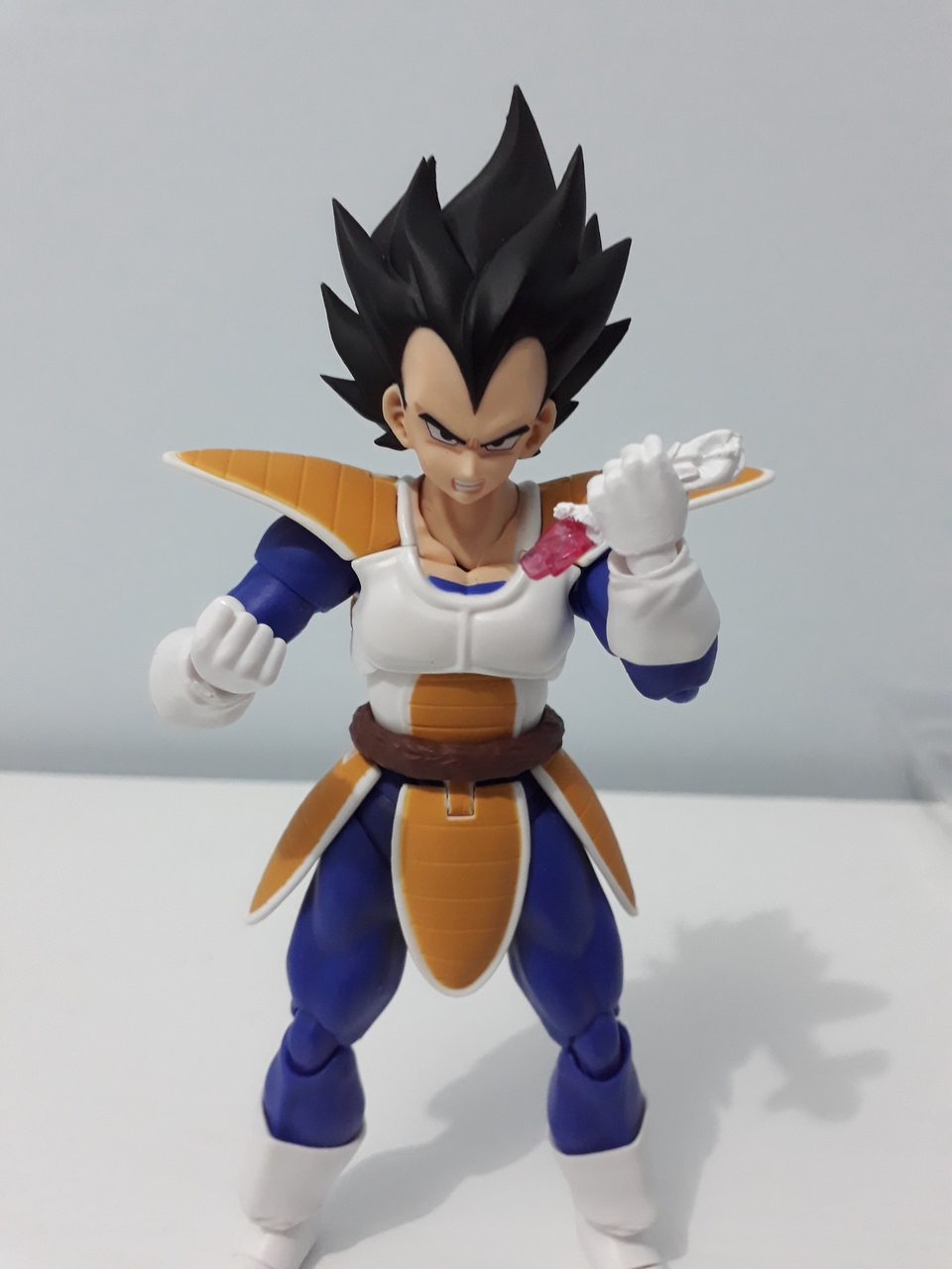 Apesar dessas qualidades, uma coisa que senti falta foram de uma base de acrílico para colocar a figura em poses como em pleno ar, ou usando uma investida rápida, e claro, alguma representação de algum dos poderes de Vegeta vistos durante sua saga (já que só é possível colocá-lo em pose de concentração de um ataque especial).