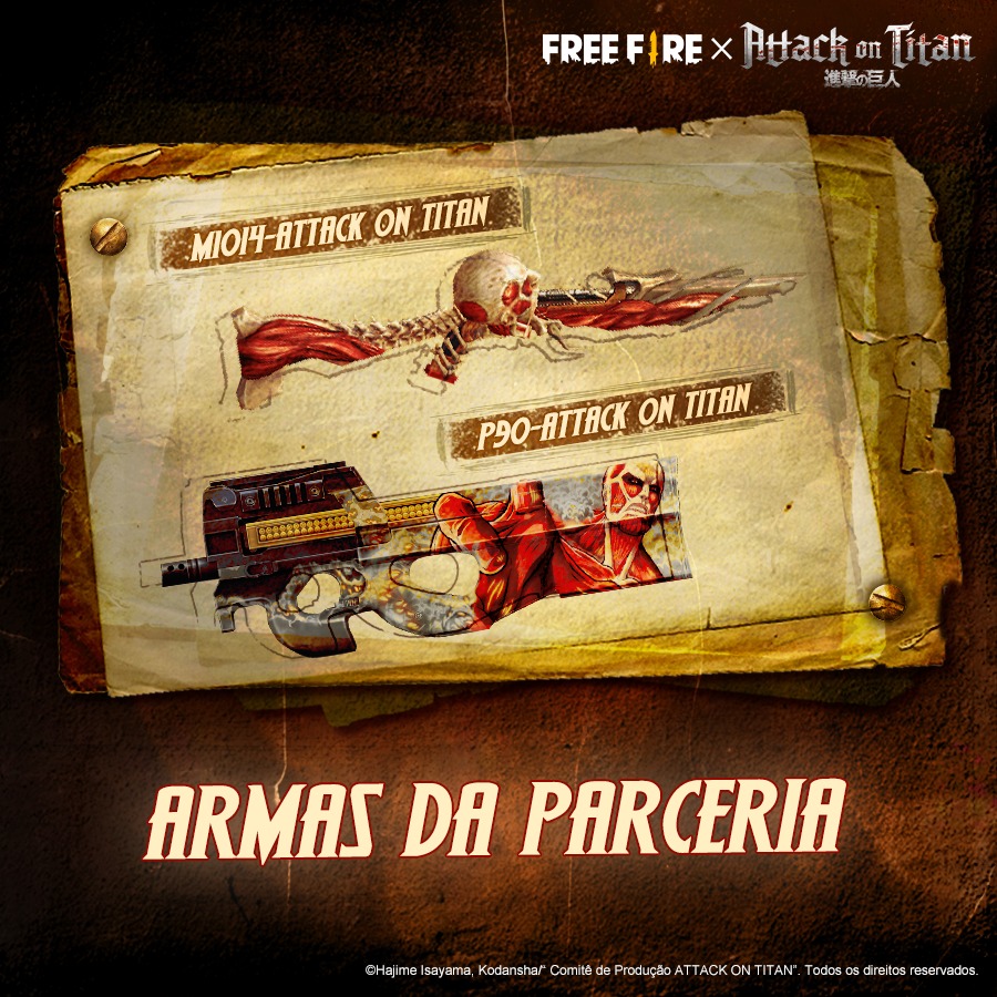 Um novo modo de jogo especial baseado no evento Attack on Titan também estará disponível no Free Fire para marcar o grande momento do evento, em 27 de março. Mais detalhes serão divulgados nas próximas semanas.