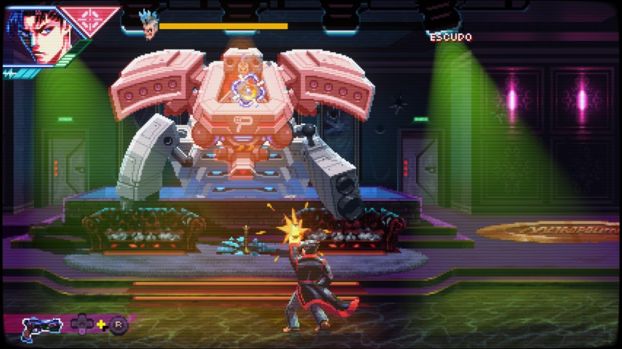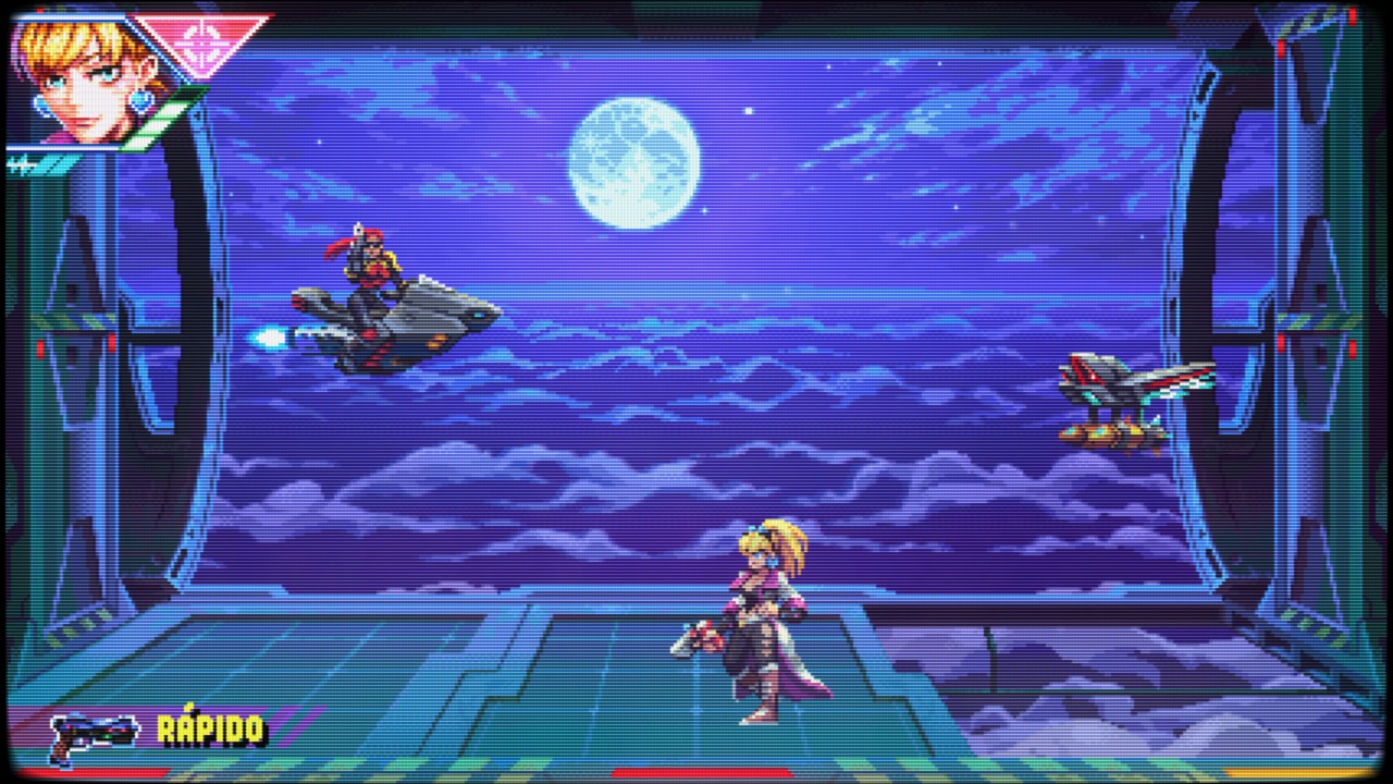 E a pixel art desse game é incrivelmente bem-feita, super detalhada, com iluminação dinâmica e um nível de detalhamento nos cenários que seria impossível de emulá-lo em um console retrô, mas que usa dessa estética justamente para conversar com a nostalgia de uma audiência que também cresceu jogando Wild Guns, Contra e Metal Slug – este último, sempre teve um primor em sua pixel art.