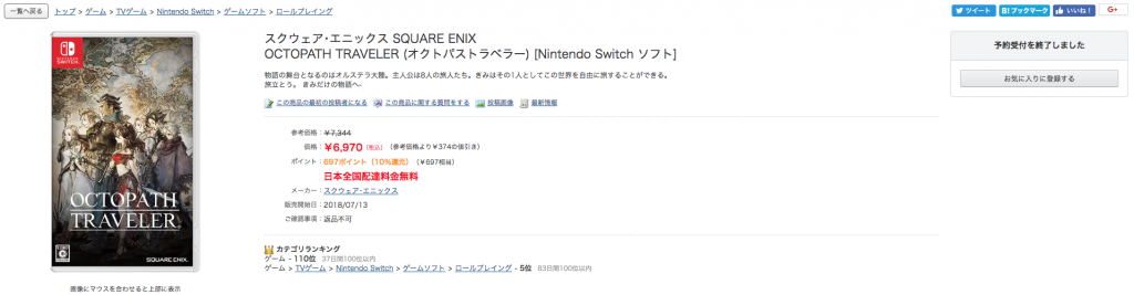 Na Amazon japonesa, o jogo está regularmente em 1º na lista de itens mais vendidos. O mesmo vem ocorrendo em outras unidades da Amazon pelo mundo.