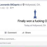 Premiação essa, que gerou uma onda de memes sobre a vitória do ator, após quatro indicações anteriores que lhe rendiam apenas piadas, e questionamentos sobre os critérios de atuação para se ganhar um Oscar – Vide que, até mesmo o gato Frajola, dos Looney Toones, têm três estatuetas, e ele nem existe!